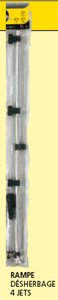 Désherbage : RAMPE DESHERBAGE 4 JETS Pour le désherbage en très grande largeur La rampe permet de transformer le pulvérisateur de ""monojet"" en ""multijets"" Existe aussi en 3 jets pour le désherbage en grande largeur.